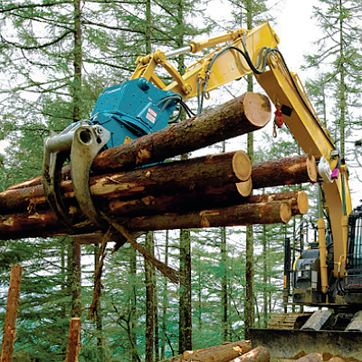 通常バケットはもちろん、法面・フォークグラップルなど、シーンに応じたバケットに対応。土木・原石山・鉄鋼業・林業など幅広い現場でお使いいただけます。
